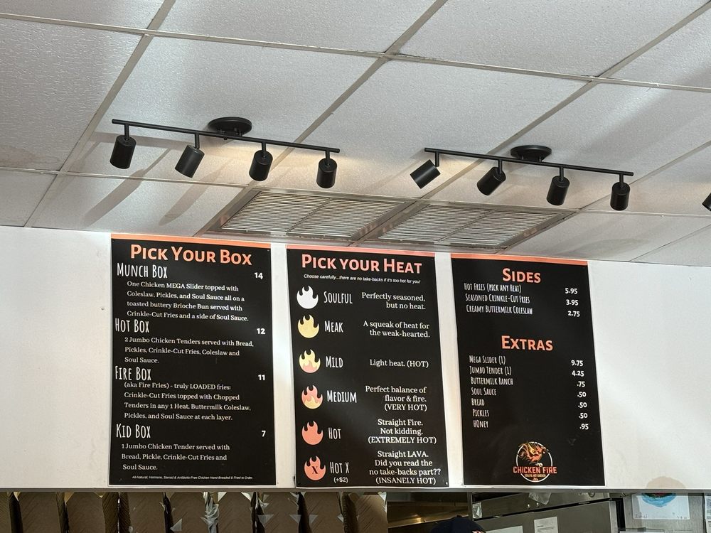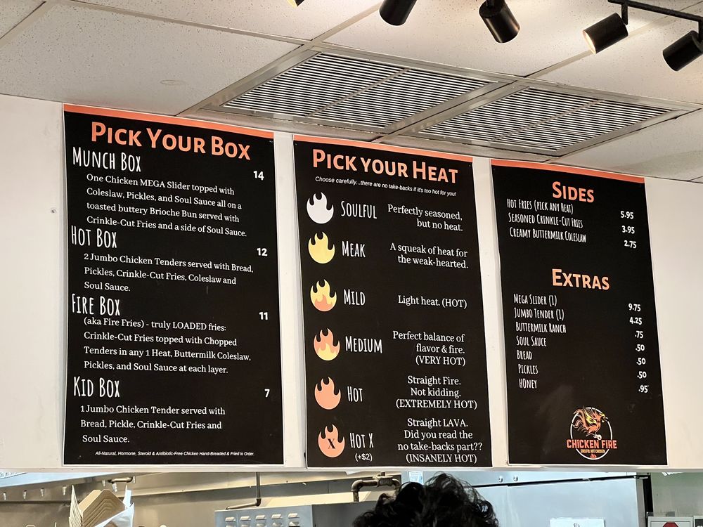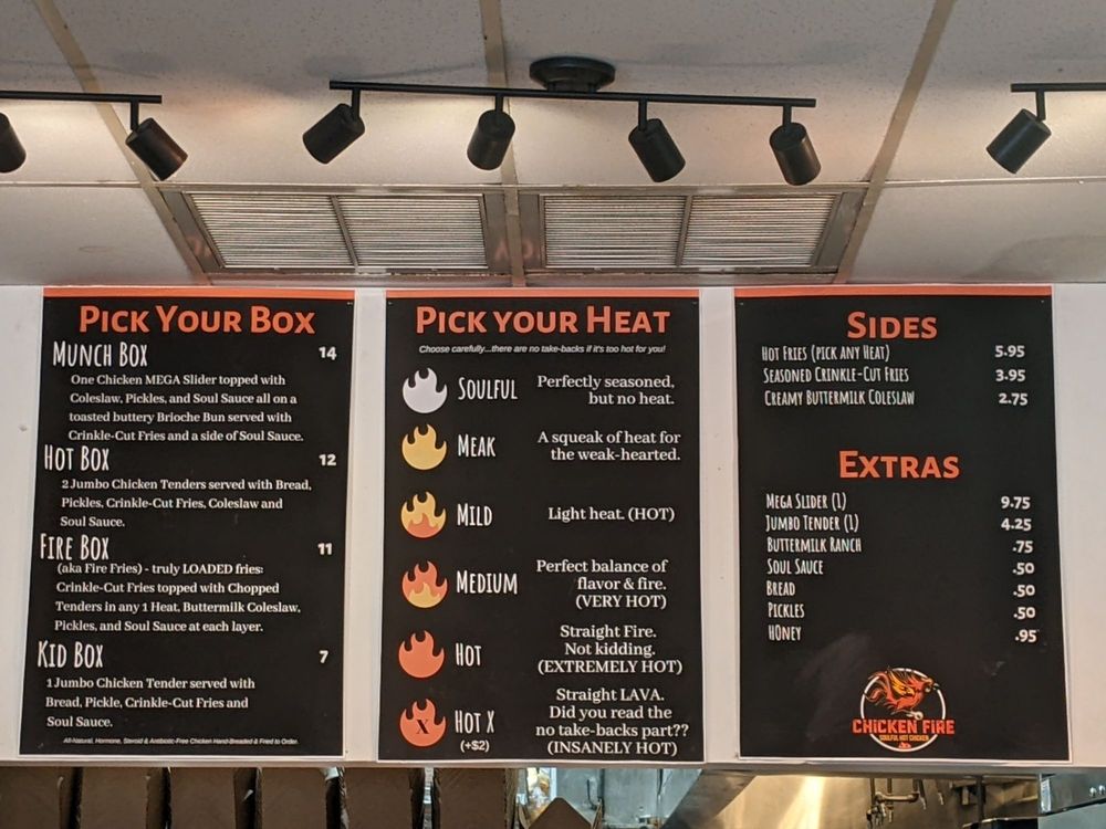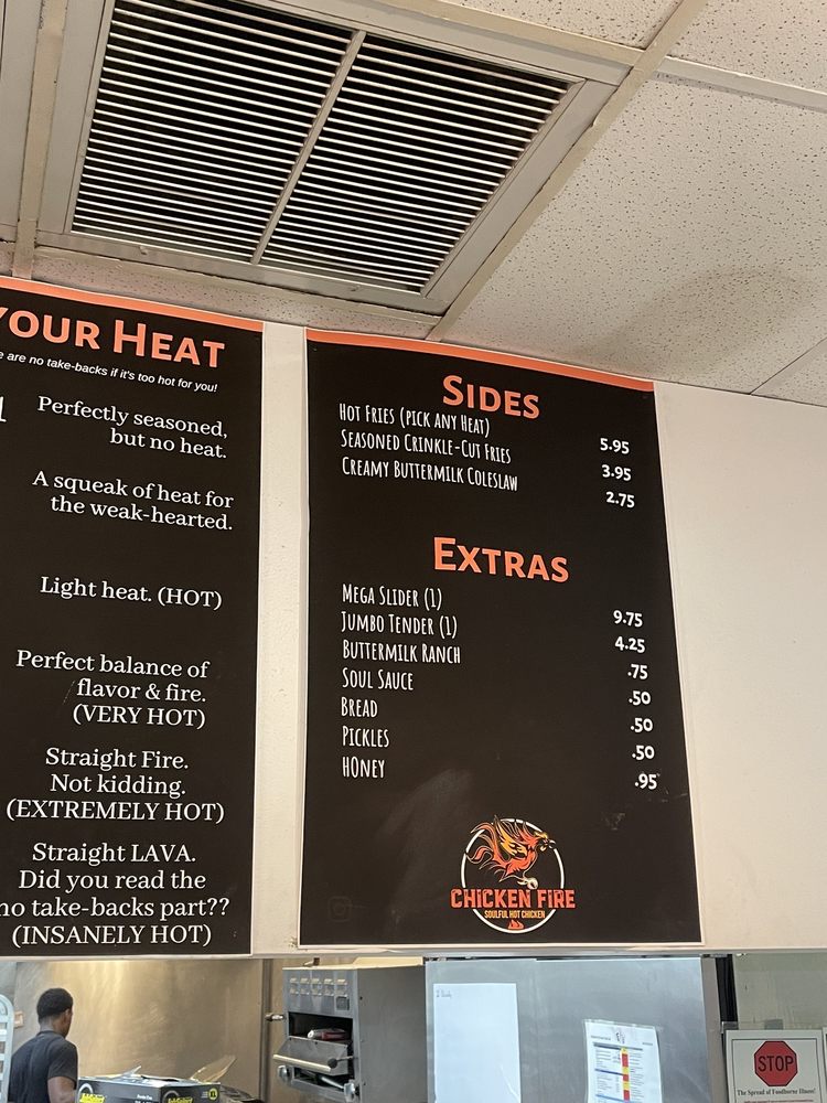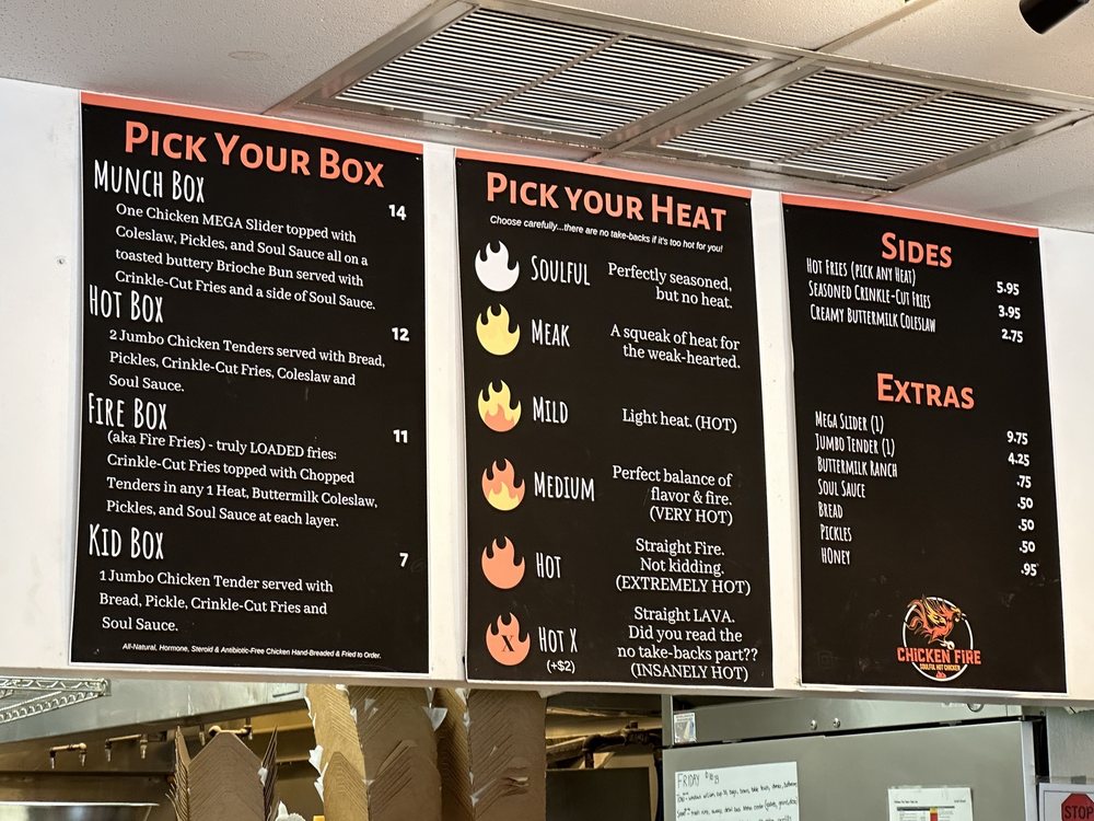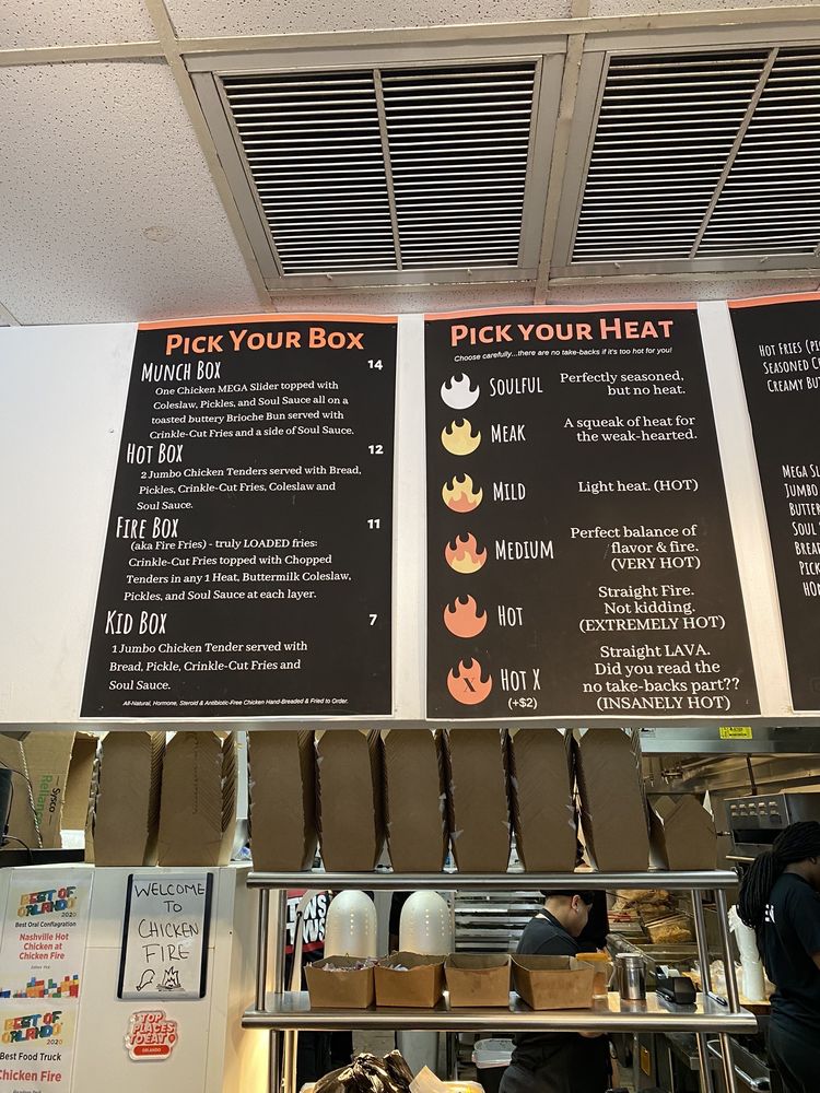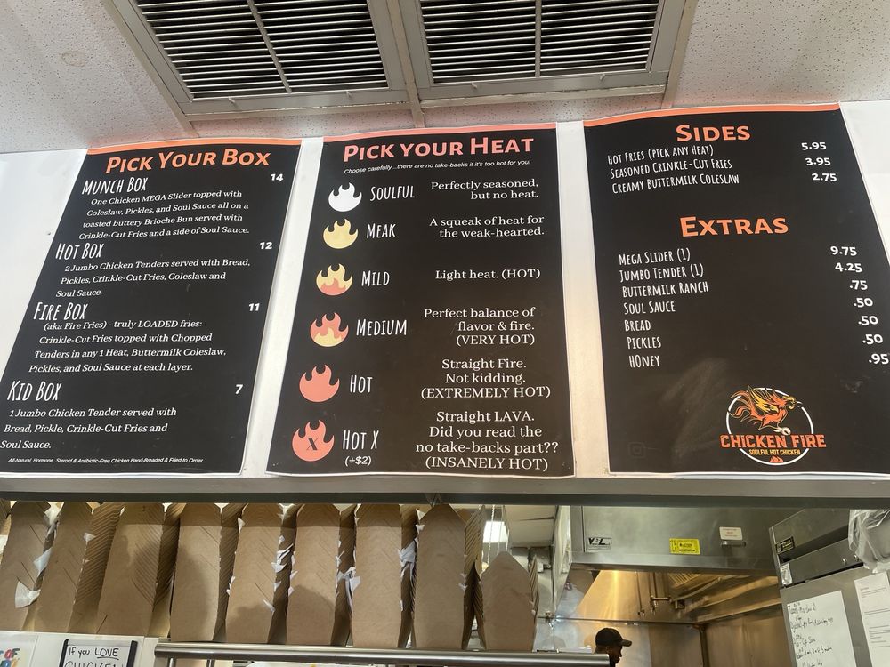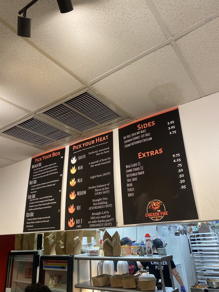 Chicken Fire is a black-owned chicken shop located in Orlando, Florida, offering a variety of chicken options. The menu includes boxes of jumbo chicken tenders served with their signature fire sauce, alongside sides like crinkle-cut fries and creamy buttermilk coleslaw. Customers rave about the flavorful and spicy chicken, crispy breading, and juicy meat. The ambiance is described as casual and laid-back, with quick service and friendly staff. The small seating area can get crowded, so be prepared for a possible wait. Overall, Chicken Fire is a must-visit spot for those craving delicious and spicy chicken dishes, with generous portions and unique flavors.